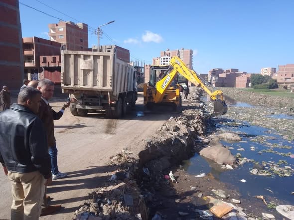 رفع حيوانات نافقة من مصرف عزبة أحمد فوزي بالقناطر الخيرية