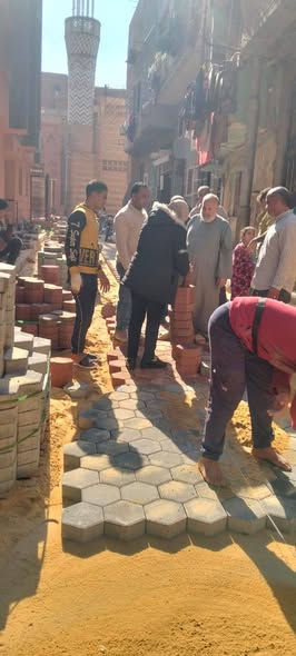 بمتابعة اعمال تركيب الانترلوك بشارع سيدى سليمان بمدينه قها والتأكد من جوده اعمال التركيب